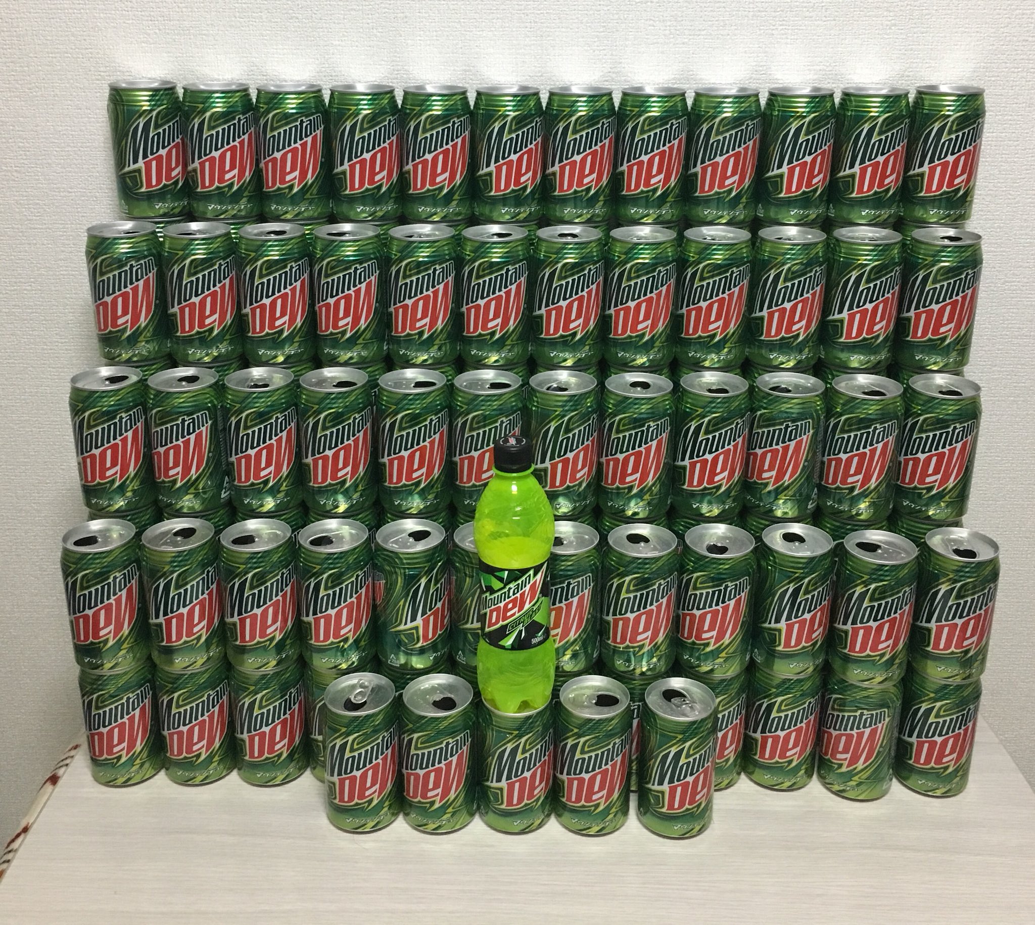 ぱえりあ On Twitter 好きな飲み物 マウンテンデュー Mountain Dew 缶173本 ペットボトル1本 総量61050ml 缶を積み上げた高さ約2162 5cm